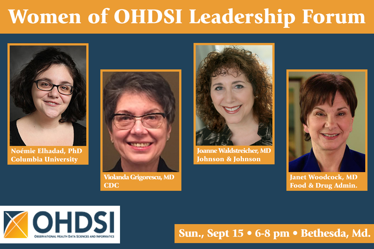 Four high-ranking women in the fields of health and observational science will speak during the Women of OHDSI Real-World Analytics Leadership Forum Sunday, Sept. 15, in a highly anticipated event that takes place on the eve of the 2019 U.S. Symposium.