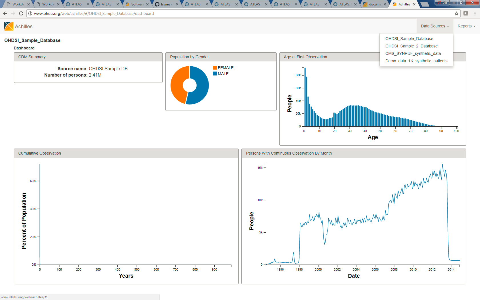 Atlas now provides the ability to review descriptive statistics about an OMOP CDM. This functionality was originally built by as part of the Achilles working group.