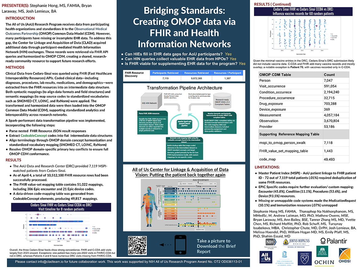 601-Hong-Bridging Standards – Creating OMOP data via FHIR and Health Information Networks – Lightning Talk Poster Stephanie S Hong