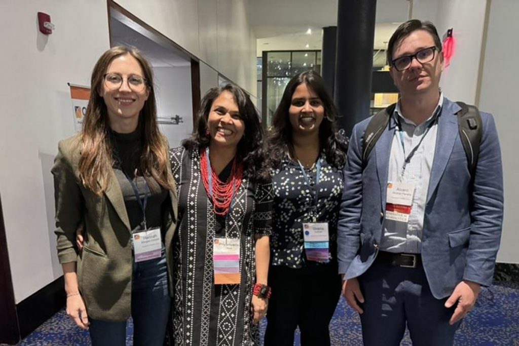 Priya stands with members of the Stanford team